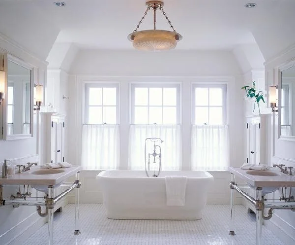 Thorough bathroom cleaning, with extra attention to fixtures and buildup